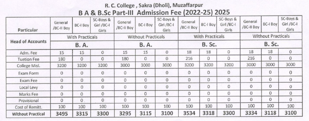 Welcome to the Online UG-3 Admission portal of R.C. College, Sakra, Muzaffarpur